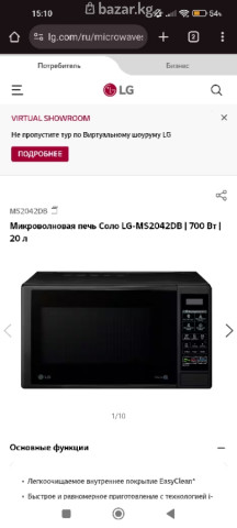 Микроволновая печь LG, белый корпус, панель управления с русскими подписями. Характеристики и функции: - Объем камеры: стандартный с поворотным стеклянным столом. - Внутреннее покрытие EasyClean — облегченная очистка, устойчивость к загрязнениям. - Сенсорная панель с крупными кнопками и дисплеем. - Международная кухня: быстрые авто-программы «Русский повар», «Французский повар», «Итальянский повар», «Восточный повар» (списки блюд на внутренней кромке). - Режимы: СВЧ (микроволны), быстрое размораживание, авто-размораживание. - Таймер и пошаговая регулировка времени: +/–, 10 мин / 1 мин / 10 сек. - Кнопка «Быстрый старт». - Режим ECO ON для энергосбережения. - Кнопки «Стоп/Сброс», установка часов. - Подсветка камеры, металлическая внутренняя полость. - Логотип LG и EasyClean на лицевой панели. Отличный вариант для разогрева, приготовления и размораживания с понятными пресетами и удобным управлением на русском языке