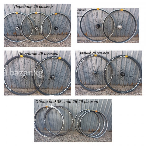 Обода на 36 спиц 26 размер 850 сом 29 размер 900 сом Колеса в сборе под дисковый тормоз,под эксентрик 26 размер переднее на пром подшипниках цена 2400 сом 26 размер заднее под трещетку на промподшипниках цена 2500 сом 26 размер заднее под трещетку на шарах цена 2300 сом 26 размер заднее под ткассету на промподшипниках цена 3000 сом 29 размер переднее на промподшипниках цена 2400 сом 29 размер переднее на шарах цена 2100 сом 29 размер заднее под трещетку на промподшипниках цена 2500 сом 29 размер заднее под трещетку на шарах цена 2300 сом 29 размер заднее под кассету на промподшипниках цена 3000 сом