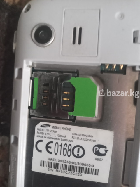 Продаю в хорошем состоянии мобильный телефон Samsung Galaxy Y Б/У.(модель GT-S5360).Прошу за телефон 1800 сом,не много уступлю. На изображении показан мобильный телефон Samsung Galaxy Y (модель GT-S5360). Основные характеристики устройства:  Модель: GT-S5360, также известный как Samsung Galaxy Y.Аккумулятор: Емкость составляет примерно 1000 мА·ч (указано на этикетке) или 1200 мА·ч (по данным спецификаций).Процессор: Одноядерный процессор с тактовой частотой 0.8 ГГц.Оперативная память (RAM): Приблизительно 0.3 ГБ.Внутренняя память: Приблизительно 0.2 ГБ, с возможностью расширения.Дисплей: Диагональ 3 дюйма с разрешением 240 x 320 пикселей и плотностью 133 ppi.Камера: Основная камера 2 Мп.Производство: Устройство изготовлено во Вьетнаме компанией Samsung, о чем свидетельствует надпись "MADE IN VIETNAM BY SAMSUNG".