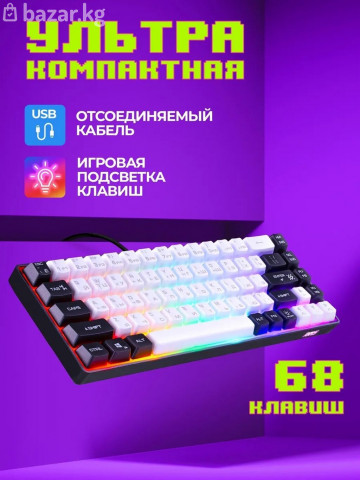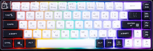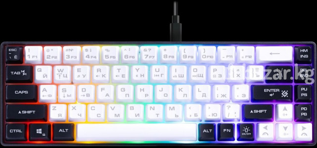 Проводная игровая клавиатура Defender Aris GK-349 Ультракомпактная игровая клавиатура с кейкапами двух цветов и регулируемой радужной подсветкой. Основные особенности модели: блокировка клавиши Win, обмен функциями между клавишами WASD и стрелками, а также поддержка Anti Ghost для 19 клавиш. Тип товара: игровой Тип клавиатуры: мембранная Тип подключения: проводной Интерфейс подключения: USB Количество клавиш: 68 шт. Цвет языка основной раскладки: серый Количество нажатий: 50 миллионов Питание: 5 В / ⎓300 мА, от USB-порта Ребра жесткости: внутренние Резиновые ножки: да Длина кабеля: 1.5 ±5% м Цвет: белый + черный Материал: ABS Системные требования для ПК: Windows 2000/XP/Vista/7/8/10 и выше, Mac OS X10