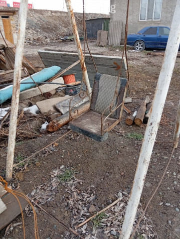 продаю качеля 4000 сом. квадрат бачок4000. стекло для погрузчиков и другие для спец техники XSMG.троссы 1000 шт по 7 метров . текстолит. железка хром для москвичей. печка на отработке 3500 сом. бачок ресивер 1000 сом. маслений набивка веревка.