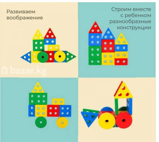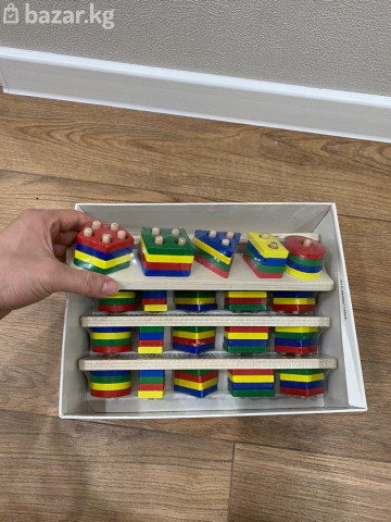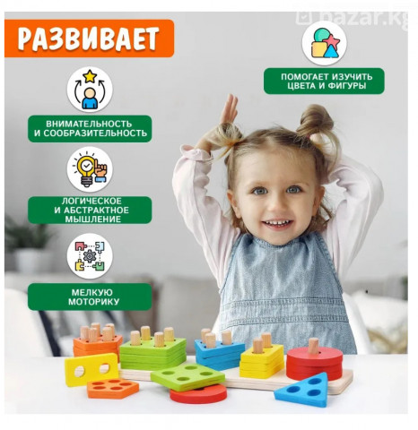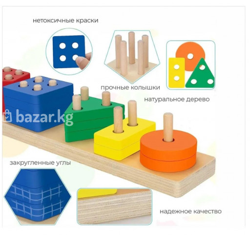 Продаётся яркий набор для развития мелкой моторики и логического мышления у ребёнка. В комплекте несколько деревянных оснований со штырьками и разноцветные детали разных форм: круги, квадраты, треугольники, многоугольники. Преимущества: • Натуральное дерево, прочная и безопасная конструкция • Яркие цвета — помогают изучать цвета и формы • Развивает моторику, координацию и пространственное мышление • Подходит для раннего развития (примерно от 1,5–2 лет) Отличный вариант для дома, детского сада или в подарок. Состояние хорошее, всё целое, новое.
