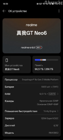 Продаю Realme GT Neo 6 CN Процессор Snapdragon 8s Gen 3, 12гб ОЗУ, 256 внутренней, дисплей с адаптивной частотой обновления 1-120Гц, 2 сим карты. Телефон в около идеальном состоянии, есть мелкие потертости, видно на фото, заклеен в пленку, imei зарегистрированы, но есть региональная блокировка, не принимает звонки по сотовой сети, мобильный интернет работает, смс приходят. В комплекте чехол и зарядник на 120 ватт, не оригинальный. Торг минимальный, обмен не интересен!