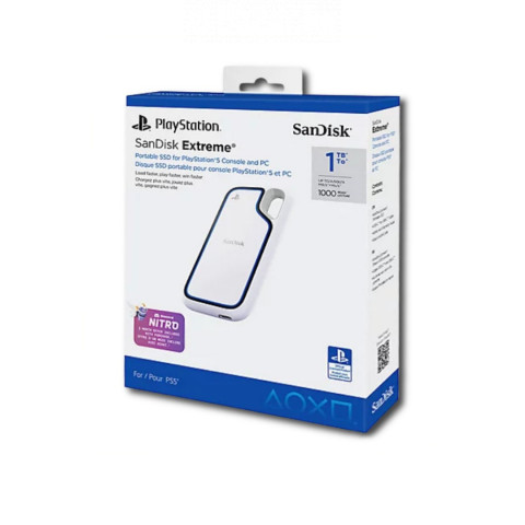 Проложите себе путь к победе с этим официально лицензированным портативным SSD для PlayStation®. Ощутите азарт игры с официально лицензированным портативным SSD SanDisk Extreme™ для консолей PlayStation®5 и ПК. С месячной пробной версией Nitro5 вы получите все преимущества Nitro, включая потоковую передачу HD-видео, два ускорения серверов и многое другое. Кроме того, получите до 2 ТБ² хранилища для архивации ваших последних действий, доступа к новым возможностям и максимального использования Discord. Благодаря невероятной скорости чтения до 1000 МБ/с¹ вы сможете быстро распаковывать игры и окунаться в новое приключение. Кроме того, благодаря классу защиты от воды и пыли IP65 и устойчивости к падениям с высоты до 3 метров² вы можете безопасно брать любимые игры с собой. Лицензия PlayStation® Разработанный, протестированный и сертифицированный специально для консолей PlayStation®, этот накопитель позволяет геймерам быстро и легко окунуться в мир игр PlayStation®. Гонка со временем! Благодаря повышенной скорости до 1000 МБ/с¹ вы можете быстро переносить сохранения игр с внешнего SSD во внутреннюю память PlayStation®5. Расширьте свою библиотеку игр PlayStation®5! Увеличьте хранилище для новейших и лучших игр PlayStation®5, позволяя хранить больше игр, не удаляя старые. Игры PlayStation® для ПК предназначены только для игр PlayStation®; храните свою библиотеку на этом высокоскоростном SSD и играйте в них без проблем с диска, подключенного к вашему ПК. Discord Nitro5: Пробная версия Nitro на месяц предоставит вам все преимущества Nitro, включая потоковую передачу HD-контента, два ускорения серверов и многое другое, чтобы вы могли получить больше удовольствия и использовать Discord по максимуму. Играйте с легкостью благодаря защите IP65 и защите от падений с высоты до 3 метров. Ваши приключения на PlayStation® подкреплены качеством и надежностью, разработанными SanDisk Основные характеристики Бренд SanDisk Емкость 1 ТБ Форм-фактор 2.5″ Вид портативный Подключение к компьютеру Интерфейс USB USB 3.2 Gen 2 Type-C Параметры диска Скорость чтения 950 МБ/с Скорость записи 1000 МБ/с Шум и ударостойкость Защищенность от влаги, от пыли Дополнительно Материал корпуса пластик Макс. рабочая температура 35 °C Высота 9.6 мм Длина 100.8 мм Ширина 52.55 мм Вес 69.4 г Комплектация Портативный твердотельный накопитель SanDisk Extreme™ для PlayStation 5 и ПК Дополнительная информация Разработанный, протестированный и сертифицированный специально для консоли PlayStation®5, он позволяет игрокам быстро и без проблем погрузиться в мир игр PlayStation®. Благодаря повышенной скорости до 1000 МБ/с вы можете быстро перенести сохранения игр с внешнего SSD-накопителя во внутреннюю память PlayStation®5. Совместимость консоли PS5®, Windows® 10+, macOS 13 и выше Многие устройства USB Type-C™ например, смартфоны, ноутбуки, планшеты