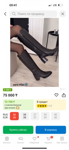 Продам женские кожаные сапоги Sara Milan. Заказывала в Казахстане, размер не подошёл. Новые. Отдам со скидкой. Кому подойдёт — пишите.