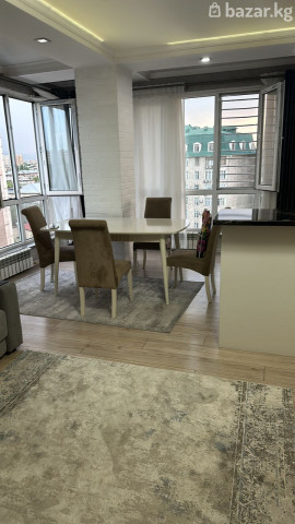 Сдается 2к кв-студия 51 кв м в центре (ул. Тоголок Молдо 40/3, возле Дворца спорта) Этаж 10/10 с хорошим видом на горы. В квартире есть мебель (спальный гарнитур, диван, стол со стульями) и техника (стиральная машина, телевизор, микроволновка, холодильник, духовка, кондиционер) Электроприготовление и газ. Имеется парковка. Отопление центральное. Стоимость 750$. Депозит 500$ 0555 750883