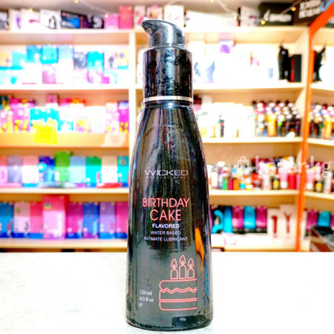 Лубрикант на водной основе со вкусом торта с кремом Wicked Aqua Birthday cake 60мл. Изысканный лубрикант на водной основе с новым вкусом торта с кремом для изумительных эротических ласк. При производстве Wicked не используется сахар, сладость придает выжимка из растения стевия, благодаря чему лубрикант не оставляет послевкусия, не липнет и дарит удивительное ощущение скольжения. В составе лубриканта есть экстракт оливкового листа, который является природным обеззараживающим средством, мягкая формула подходит даже для чувствительной кожи. Удобная упаковка с помпой поможет насладиться моментом близости в полной мере. Не содержит парабенов, безвреден для латекса.