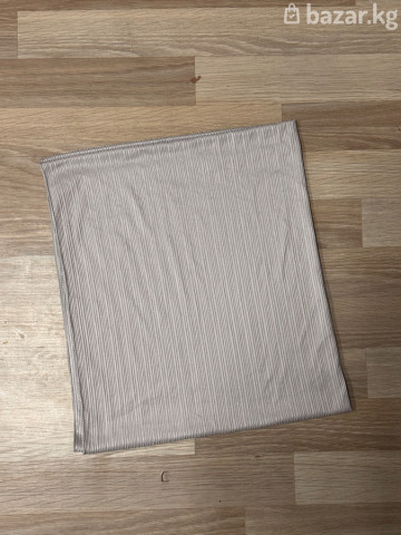 • Цвет: Светло-серый / серебристый с блеском. • Текстура: Мелкое вертикальное плиссе. • Состояние: 10/10 (отличное). • Материал: Легкая эластичная ткань. • Особенности: Не нужно гладить, хорошо драпируется.