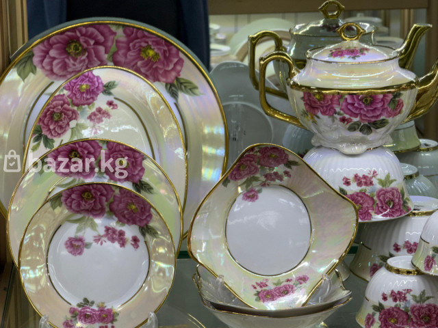Набор на 12 персон 64 предмета 12 пияла 12 кеса 12 шт 0.6 тарелка 12 шт 0.7 тарелка 6 шт салатница 4 шт овальная 2 шт чайник 2 шт пловница