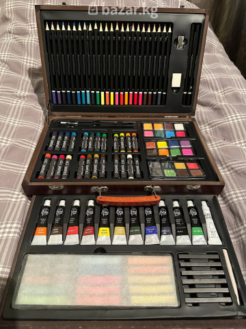 Шикарный набор художника в деревянном кейсе (Новый) 🎨 Идеальный подарок! Ищете идеальный подарок для ребенка, подростка или взрослого, который любит рисовать? Этот стильный деревянный сундук с принадлежностями для творчества - именно то, что вам нужно! Выглядит очень солидно и дорого, вызывает "вау-эффект" с первой секунды. Внутри есть абсолютно всё для создания шедевров: ✔️ Яркие цветные карандаши ✔️ Набор масляной пастели (oil pastel) ✔️ Акриловые краски в тюбиках ✔️ Акварельные краски ✔️ Кисти, ластик, точилка и другие необходимые аксессуары