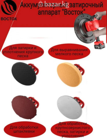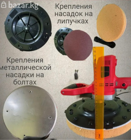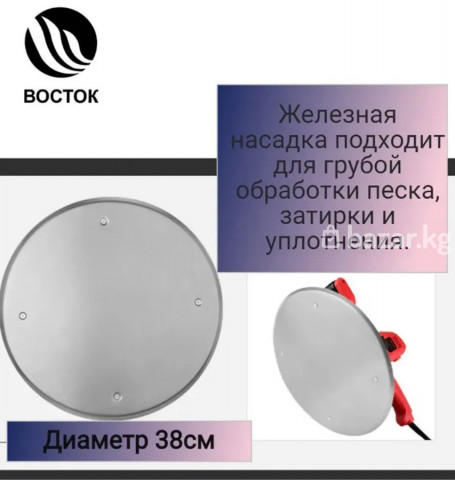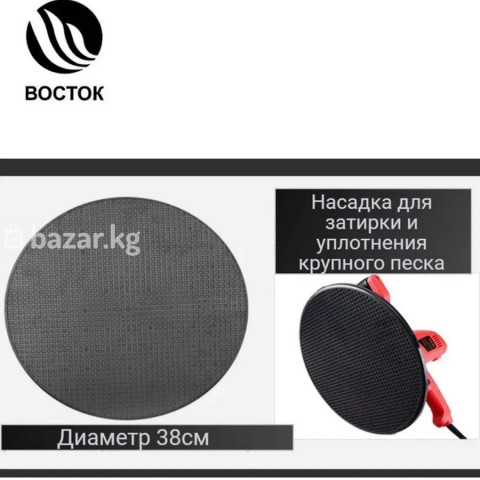 Назначение: - Профессиональный инструмент для отделочных работ: затирка, уплотнение и выравнивание штукатурных смесей и песка на стенах и потолках. Комплект и насадки: - Платформа диаметром 38 см. - Насадка резиновая/текстурированная 38 см — для затирки и уплотнения крупного песка. - Насадка губчатая 38 см — для финишной обработки и выравнивания мелкого песка. - Абразивный круг на липучке. - Крепёж: платформы под болты для металлической насадки и крепления насадок на липучках. - Дополнительная рукоятка, мерная линейка на фото для ориентировки габаритов. Особенности: - Большой рабочий диск 380 мм ускоряет обработку площадей. - Быстрая смена оснастки: болтовое крепление для жёсткой металлической платформы и «липучка» для абразива/губки. - Подходит для черновой и финишной отделки: от уплотнения раствора до финального заглаживания.