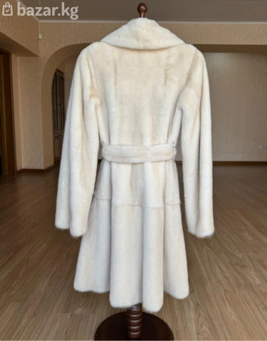 Шуба из норки NAFA от TEO Topalidis - Материал: отборная североамериканская норка NAFA (ярлык на подкладке). - Цвет: молочно-кремовый (light beige/ivory). - Крой: классическое пальто до колена. - Ворот: объемный английский воротник с мягкими лацканами. - Застежка: потайные крючки спереди. - Пояс: съемный меховой пояс в тон, шлевки на талии. - Спинка: легкое расклешение от линии бедра для свободы движения. - Рукава: прямые, полной длины. - Подклад: светлая атласная с фирменным жаккардовым логотипом TEO Topalidis. - Посадка: подчеркнутая талия за счет пояса, визуально удлиняет силуэт. - Сезон: холодная осень/зима. - Уход: хранить на широких плечиках, избегать намокания, чистка в специализированном ателье. Элегантная, теплая и очень мягкая норковая шуба премиального уровня с бирками производителя и NAFA, универсальная для повседневных и выходных образов.