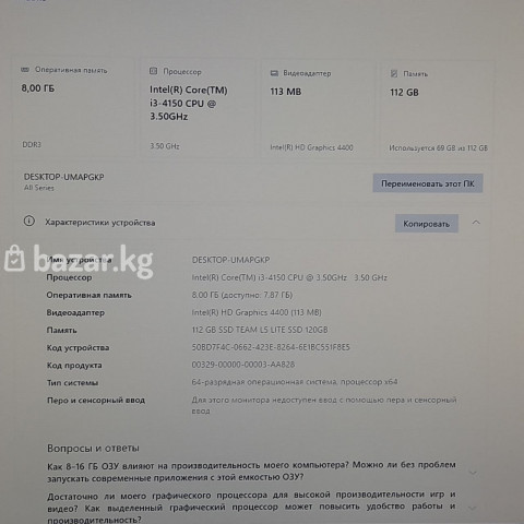 • i3 4150 2/4 • 8GB DDR3 / SSD 120GB • Intel HD P530 • Asus 1150 / БП 350W • Гарантия на проверку 7 дней • На SSD Есть бед сектора на работу не влияют. • Цена 7000 сом ( Без Монитора ) • Для дома и офиса • офисных программ • интернета и соцсетей • учёбы, Zoom, YouTube • работы в 1С • Word, Excel • Установлено: • Windows 10 • Microsoft Office LTSC Professional Plus 2021 • Базовый пакет необходимых программ • Антивирус с обновлениями • Полностью готов к работе • Комплектацию можно изменить Цена 7 000 сом ✅ Быстрый заказ — WhatsApp ✅ Без выходных 🕒 Ежедневно с 10:00 до 22:00 🚚 Доставка по Кыргызстану: 150 - 350 cом №924