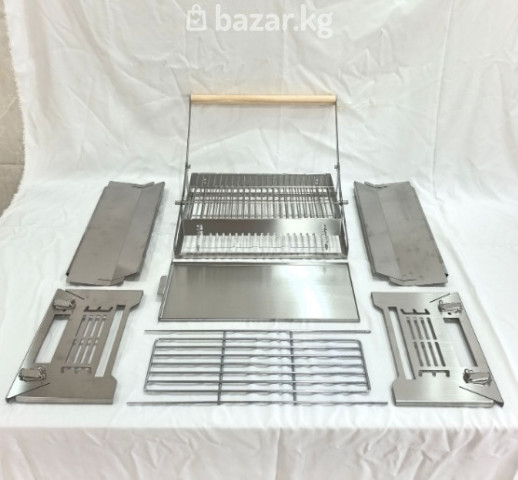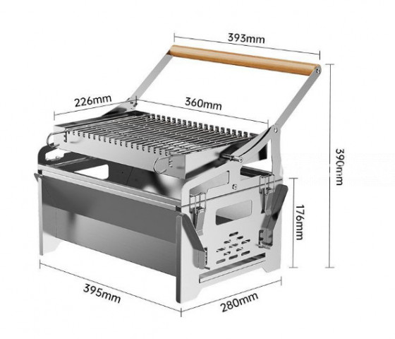 - Материал: толстостенная нержавеющая сталь, жаропрочная, не ржавеет, легко очищается. - Конструкция: короб-мангал с перфорацией для притока воздуха и выдвижной/съемной колосниковой решеткой для углей. - Верхняя секция: поворотная решетка-гриль на шарнирных рычагах с фиксируемыми положениями и деревянной термоустойчивой ручкой для безопасного подъема/опускания. - Регулировка жара: решетка поднимается и опускается, что позволяет точно контролировать расстояние до углей и степень прожарки. - Транспортировка и хранение: компактно складывается в плоский формат; боковые защелки фиксируют узлы, есть интегрированные ручки для переноса. - Вентиляция: продольные прорези по бортам ускоряют розжиг и обеспечивают стабильное горение углей. - Универсальность: подходит для стейков, овощей, рыбы, шаурмы/шашлыка на решетке, сосисок и пр. - Безопасность: устойчивая опорная рама, теплая зона вынесена от рукояти; направляющие ограничивают ход верхней решетки. - Обслуживание: гладкие поверхности для быстрой мойки; разборные элементы упрощают чистку золы. Размеры (см. схему): - Длина корпуса: 395 мм - Ширина: 280 мм - Высота до ручки: 390 мм - Рабочая зона решётки: примерно 360 × 226 мм - Высота корпуса (без ручки): 176 мм Комплектация на фото: - Корпус гриля и боковые панели - Регулируемый угольный лоток - Вращающаяся решётка-кассета - Дополнительная решётка/шампурная секция - Ручка с деревянной накладкой Идеален для стейков, курицы, рыбы, овощей и бургеров; подходит для пикников, дачи и кемпинга. Используется с древесным углём или брикетами.  #гриль #мангал #портативныйгриль #складноймангал #нержавеющаясталь #грильнаприроде #барбекю #bbq #походныйгриль #туризм #кемпинг #отдыхнаприроде #пикник #outdoor #грильнауглях #мангалскладной #поход #рыбалка #охота #дача