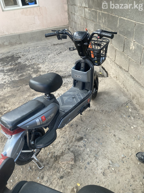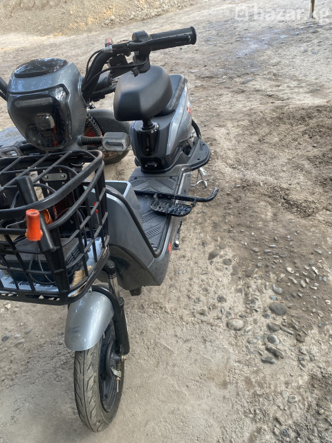 Электровелосипед/электроскутер городского типа - Компактная рама с низкой посадкой и широкой платформой для ног - Удобное седло и дополнительное переднее мини‑сиденье/площадка - Передняя корзина для покупок/рюкзака, встроенный бардачок‑органайзер - Светодиодная фара, габарит/стоп‑сигнал сзади, поворотники - Передняя вилка с амортизацией, задние амортизаторы - Ножка‑подставка, подножки для пассажира - Колеса на литых дисках, дорожные шины - Электропривод с ручкой газа на руле, ручные тормоза - Зарядный разъем под сиденьем, аккумулятор в базе (встроенный отсек) Идеален для передвижения по городу: тихий, экономичный, с достаточным местом для багажа и удобной посадкой. Цвет: серый с черными элементами.