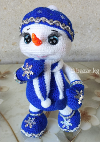 Снеговичок-отличное дополнение под елку в Новый год и красивая игрушка для вашего ребёнка. Рост игрушки от 26 см ( по желанию), детская гипоаллергенная пряжа , наполнитель холлофайбер, ручная стирка.