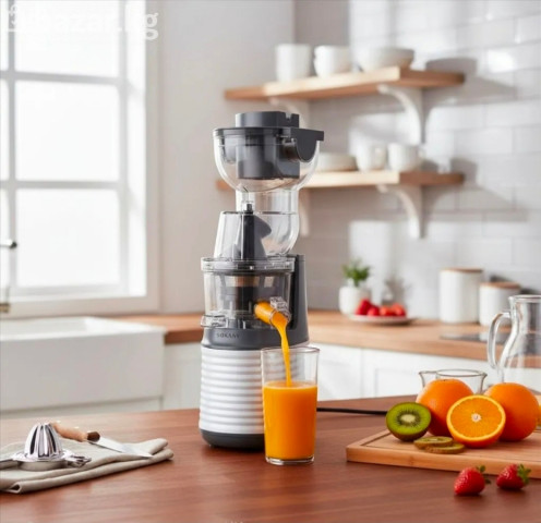 ⚙️Характеристики: - Тип: вертикальная низкооборотная шнековая соковыжималка - Предназначение: свежие соки из цитрусовых, яблок, груш, винограда, ягод, твердых овощей; подходит для зелени - Технология холодного отжима: бережное извлечение сока с максимальным сохранением витаминов и минимальной пеной - Широкое загрузочное отверстие с крышкой-лепестком — удобно закладывать крупные дольки - Двухступенчатая система рфильтрации; мелкое сито для чистого сока - Реверс для быстрого устранения закусов продуктов - Плотная заглушка на носике для аккуратной подачи без капель - Тихая работа двигателя - Корпус с глянцевой отделкой бордового цвета - Простая разборка и промывка деталей - На коробке: SOKANY Whole Slow Juicer, item no: JE-25 Комплектация: - Основной блок с мотором Прозрачная чаша со шнеком и фильтром Носик «антикапля» Инструкция на коробке Идеально для ежедневного приготовления свежих соков на завтрак и полезных миксов для всей семьи.