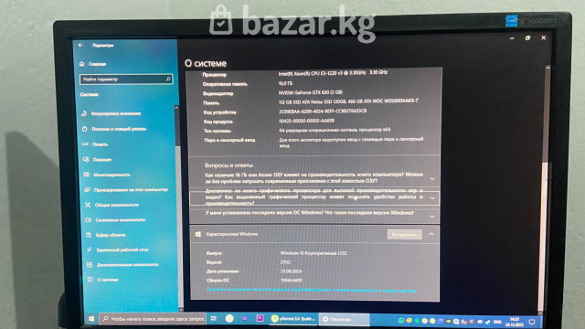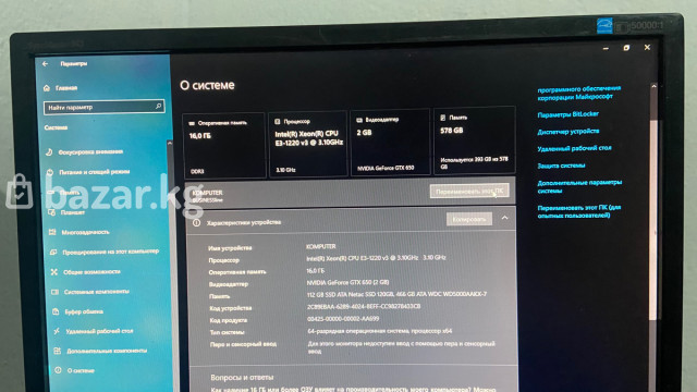 Системный блок Delux + монитор, клавиатура и мышь Характеристики ПК: - Процессор: Intel Xeon E3-1220 v3, 3.10 ГГц (4 ядра) - Оперативная память: 16 ГБ DDR3 - Видеокарта: NVIDIA GeForce GTX 650, 2 ГБ - Накопители: SSD 120 ГБ + HDD 456 ГБ (итого ~576–578 ГБ в системе) - Оптический привод: DVD RW - Встроенный мультикардридер (MS/MS Duo, CF, SD/MMC, XD и др.), USB-порты на передней панели - Корпус: Delux Периферия: - Монитор Samsung (на фото) - Проводная клавиатура и мышь (на фото) ПО: - Windows 10 (на фото «О системе» и «Диспетчер устройств») Подходит для офисных задач, учебы, мультимедиа и базовых игр. Готов к работе: быстрый старт с SSD, достаточный объем ОЗУ, дискретная видеокарта для повседневных задач.