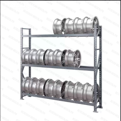 Стеллаж имеет сборно-разборную конструкцию, состоящую из вертикальных рам, закрепленных на них горизонтальных балок и разборных полок; крепление балки к стойкам безболтовое. Балка крепится к стойке на зацепах и закрепляется фиксатором, предохраняющим балку от случайного подъема; стойки изготовлены из оцинкованного металлического профиля 55х30 мм. предусмотрено крепление к полу;
