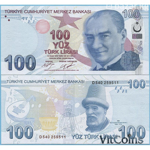Банкнота Турции — 100 турецких лир (TCMB). В наличии: ✅ - Номинал: 100 Türk Lirası (Yüz Türk Lirası). - Эмитент: Türkiye Cumhuriyet Merkez Bankası. - Серия/дизайн: с портретом Мустафы Кемаля Ататюрка на лицевой стороне. - Оборотная сторона: портрет мыслителя и поэта Джаляледдина Руми (Mevlana), музыкальные мотивы и инструменты. - Год дизайна/выпуска: современная серия (указание «2009» на банкнотной фабрике). - Номиналы и надписи: «100», «YÜZ TÜRK LİRASI», «TÜRKİYE CUMHURİYET MERKEZ BANKASI». - Защитные элементы (видимые на изображениях): водяные знаки, микропечать, защитная нить, элементы, меняющие оттенок, серийные номера - Цветовая гамма: голубые, бирюзовые и фиолетовые тона с красными акцентами. - Размер и ориентация: стандартный горизонтальный формат банкнот серии TL. Сохранность: UNC - «Aнц», «анциркулейтед», «Uncirculated» ( не была в обращении): ❗На фото представлен пример. Серия и номер могут отличаться. ❗ Данная банкнота подлинная. 💰 Оплата принимается: С $ € £ 📌 Купить банкноту можно за евро-монеты. Подходит для коллекционирования бонистики и в качестве наглядного образца современной турецкой валюты. ❕ Объявление будет удалено или деактивировано после продажи. Только личная встреча ♦️♦️♦️