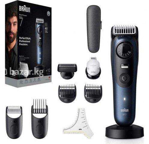 Триммер Braun S7 BT7540 10 в 1 создает аккуратные линии и стильные формы бороды. Корпус выполнен из пластика в сине-черном цветовом решении. Устройство предназначено для точного подравнивания, моделирования, ухода за лицом, стрижки волос на голове и теле.  10 функций. Общие характеристики Страна производитель Китай Насадок в комплекте 4 Тип триммера для бороды и усов Тип устройства триммер Цельнометаллические лезвия да Характеристики Количество установок длины 40 Мягкий чехол да Автоматическая настройка напряжения да Вес в упаковке (кг) 0.590 Водонепроницаемость да Время зарядки аккумулятора (час) 1 Время работы аккумулятора (мин) 120 Гарантия (лет) 2 Зарядное устройство SmartPlug да Очистка под проточной водой да Размеры в упаковке д*ш*в (см) 16*7*25 Светодиодный индикатор уровня зарядки да Тип аккумулятора Li-ion Тип питания аккумулятор Тип устройства триммер для бороды и усов Цвет синий Щеточка для чистки да Функциональность Мотор Autosensing да Установка длины волос (мм) 0.5-20 Шаг регулировки длины (мм) 0.5 Комплектация Насадка для точного бритья да Насадка для точного стайлинга да Насадка-гребень для длинных волос 10-20 мм да Насадка-гребень для коротких волос 1-10 мм да