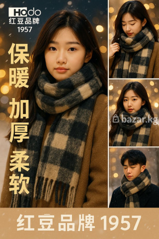 🧣 Тёплый зимний шарф Hodo 1957 — новый, качественный, стильный Продаю новый зимний шарф Hodo / 红豆 1957. Очень мягкий, тёплый и приятный на ощупь. Толстый материал отлично удерживает тепло даже в мороз. Премиальный тканый шарф в клетку — аналог тех, что продаются на Taobao. Подходит как девушкам, так и парням. ⭐ Преимущества: Материал: Шерсть с примесями полиэстера 100% (похоже на мягкую шерсть) Тёплый, плотный, утеплённый — идеально для зимы Мягкий и приятный к коже — не колется Большой размер: 210 × 40 см Стиль корейской моды (韩版) Универсальный — подходит и девушкам, и парням Красивый дизайн в клетку, подходит под любое пальто, пуховик или куртку Можно носить как шарф, палантин или накидку Отличный подарок
