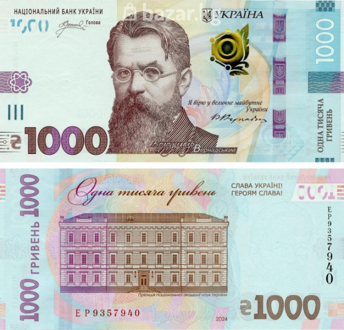 Банкнота 1000 гривен (Украина) В наличии: 2штук Описание: - Номинал: 1000 гривен. - Эмитент: Национальный банк Украины. - Серия с портретом В. И. Вернадского на лицевой стороне. - Оборот: изображение здания Президиума Национальной академии наук Украины. - Надписи: «Україна», «Одна тисяча гривень», слоган «Слава Україні! Героям слава!». - Элементы защиты и дизайна: водяные знаки, микротекст, защитная нить, оптически переменные элементы, рельефные участки печати, прозрачные окна/элементы в правой части, скрытые изображения и нумерация. - Вертикальная шкала с повторяющимся «1000» справа, крупное число номинала внизу слева, серийный номер на обороте. - Подпись руководителя НБУ и цитата рядом с портретом. - Год на обороте: 2024. Сохранность: UNC ( Uncirculated): Без обращения, идеальное состояние, острые углы, чистая бумага. ❗На фото представлен пример. Серия и номер могут отличаться. ❗ Предоставленная банкнота подлинная и сейчас на ходу. 💰Оплата принимается: С $ € £ 📌 Вы можете купить банкноту за евро-монеты. Подходит для: Коллекционеров современных украинских банкнот и вариантов дизайна с расширенным набором защитных элементов. ❕ Объявление будет удалено или деактивировано после продажи.