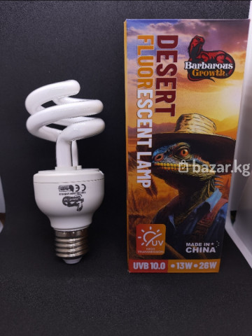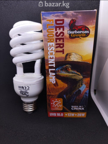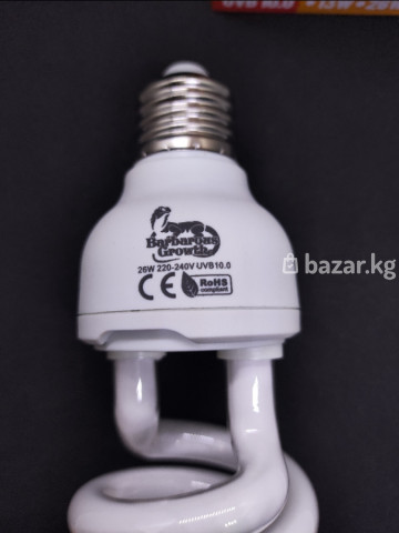 Ультра-фиолетовая лампа. UVB 10, 13W-23W, 220V, цоколь Е27. Для террариумных (экзотических) животных. Цена: 13W-800 сом, 23W-950 сом.