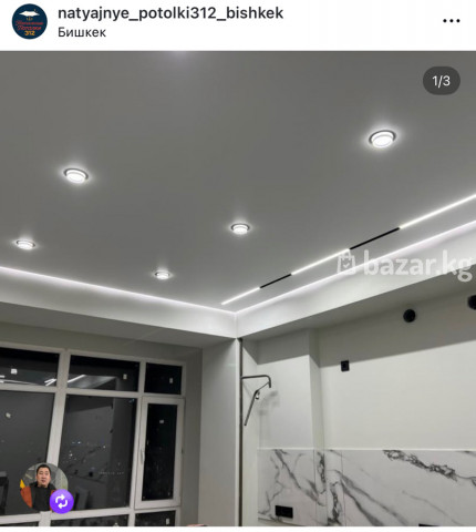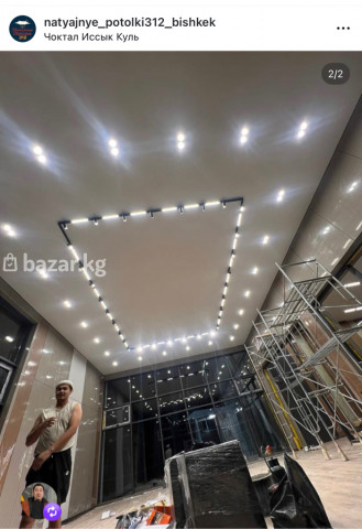 Дизайнерские натяжные потолки • Парящие потолки с подсветкой • Потолки премиум качества без запаха • Современное освещение Опытная бригада установит потолок за кротчайшие сроки, качество гарантируем. Гарантия 10 лет. Также установим все виды освещения (люстры, софиты, плафоны). Все работы можете посмотреть в нашем инстаграм аккаунте @natyajnye_potolki312_bishkek