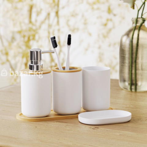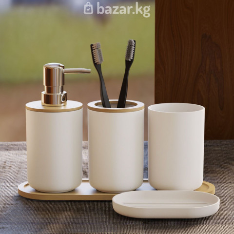 Ванный набор из 5 ти предметов - дозатор - стаканчик для зубных щеток - стаканчик - мыльница - подставка Материал: бамбук / акрил