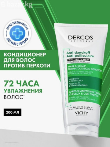 VICHY DERCOS Увлажняющий кондиционер против перхоти для волос и кожи головы. Увлажняющий кондиционер против перхоти с двойным действием*: увлажняет и распутывает волосы, облегчая расчесывание, но также устраняет видимую перхоть**., Способ применения: Нанесите и распределите небольшое количество кондиционера на кожу головы и слегка отжатые волосы, помассируйте. Оставьте на 5 минут, затем тщательно смойте водой. При попадании в глаза немедленно промойте их водой., *Среди продуктов линейки DERCOS TECHNIQUE, **Клиническое исследование, применение 3 раза в неделю, 4 недели.,