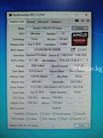 Игровая Видеокарта Sapphire RX 470 4GB GDDR5 256BIT 1-HDMI 8-pin Доп питание 7-дней на проверку, состояние хорошее кулера не шумят. Цена 5000Сом Так же есть и другие комплектующие кулера, системы охлаждения, ssd, память, и так далее. ✅Доставка по городу 150-300сом а так же в регионы ✅Для быстрого заказа ответа пишите Whatsapp ✅График работы 10.00 до 22.00 Без выходных +996550917124 +996700474124 www.kaufmannservices.pro №376