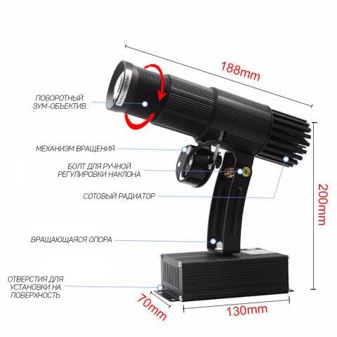 Как мне заказать у вас слайд для гобопроектора? 1. Если вы сами можете отредактировать изображение, то отправьте его нам по электронной почте. Лучшим форматом файлов для производства гобо слайда является векторный формат (например, CDR или PSD для многоцветных изображений). Изображения в высоком разрешении тоже подойдут. 2. Если вы сами не можете отредактировать изображение, свяжитесь с нами или напишите нам свою идею. Мы сделаем дизайн и согласуем его с вами. Это не займет много времени. Вы делаете доставку? Безопасно ли отправлять транспортной компанией? Мы делаем бесплатную доставку по КР. Гобо проектор и слайды хорошо упакованы в картонный короб с пенопластом. Это гарантирует доставку без повреждений. Какие гобо слайды вы делаете? Можете сделать слайд из плёнки? Мы делаем слайды только из специального стекла. Слайды напечатанные на пленке подходят только для маломощных проекторов (пленка плавится от температуры), а изображение на ней выцветает за несколько дней. Стеклянные слайды выдерживают температуры от -40 до 300°С. Имеют диаметр 37 мм (30 мм для гобо проекторов с функцией вращения). Есть ли другие линзы на ваши проекторы? Дополнительные линзы мы можем привезти для вас под заказ. Будет ли видно изображение с гобо проектора днем? На это влияет много параметров. 1) Освещенность в месте куда будет направлена проекция. 2) Освещенность создаваемая 3) Светоотражающая способность поверхности. На светлом фоне более яркое изображение, на темном менее яркое. 4) Цвета (и их количество) используемые в слайде (светлые видно лучше, темные хуже). Если вы сомневаетесь с выбором, свяжитесь с нами. Мне нужен недорогой проектор для рекламы на асфальте у входа. Что посоветуете? В данном случае, как правило, проектор располагают на расстоянии от 3 до 5 метров от изображения. Если реклама будет включаться в темное время (вечер, сумерки, ночь) то подойдет проектор мощностью 30Ватт. Днем в тени подойдет проектор 50 или 40 Ватт. Слайды для Гобо Проекторов? Мы используем стеклянные гобо слайды, которые на сегодняшний день считаются лучшими.