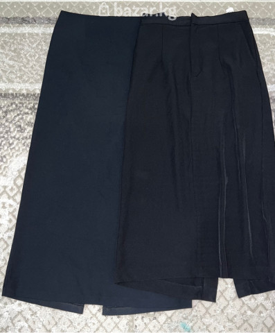 Хорошие юбки ✨ Две юбки — школьные / офисные / повседневные Состояние отличное. Цена за две пары: 2000 сом ⸻ Брендовые юбки ❤️ Красная атласная юбка (бука) Очень красивая, яркая, аккуратная. Цена: 650 сом чёрная в подарок