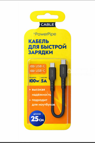 Кабель для быстрой зарядки PowerPipe (USB-C → USB-C) Качественный кабель PowerPipe предназначен для быстрой и стабильной зарядки современных устройств. Поддерживает мощность до 100W и силу тока 5A, что делает его идеальным выбором для смартфонов, планшетов и ноутбуков. 🔹 Разъёмы: USB-C / USB-C 🔹 Мощность: до 100W 🔹 Сила тока: 5A 🔹 Длина: 25 см 🔹 Прочная оплётка — защита от перегибов 🔹 Поддержка быстрой зарядки и передачи данных Компактная длина 25 см удобна для использования с пауэрбанком, в машине или для аккуратного рабочего стола. Надёжный и долговечный кабель на каждый день.
