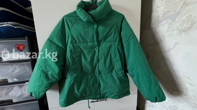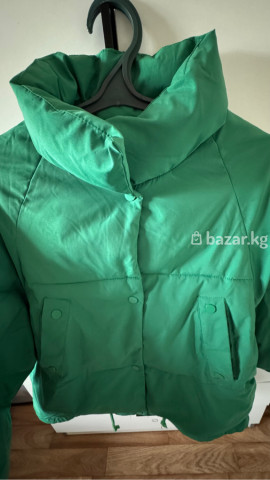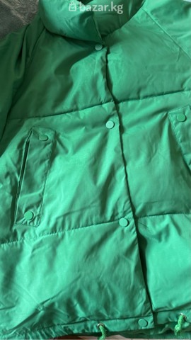 Цвет насыщенный зеленый, оверсайз, укороченный с рабочими карманами на кнопках