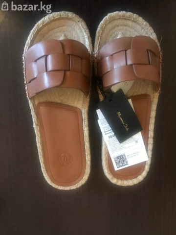 Женские кожаные шлёпанцы-эспадрильи - Верх: переплетённые кожаные ремешки карамельно‑коричневого цвета. - Стелька: гладкая кожаная, с тиснённым логотипом. - Подошва: платформенная основа в стиле эспадрилий с джутовой оплёткой по периметру и прошивкой. - Колодка: широкая комфортная посадка, открытый нос. - Декор: плетение «basket weave», аккуратные швы. - Комплектация: заводские бирки и карточки. Идеальны для лета: устойчивые, мягкая стелька, натуральные материалы, универсальный оттенок сочетается с льном, денимом и хлопком. Подойдут для города и отдыха у моря