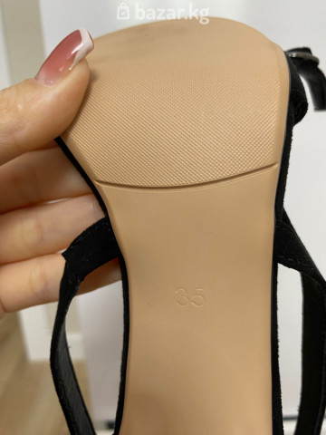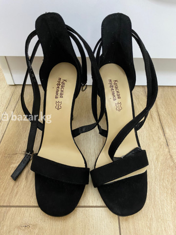 Женские туфли на шпильке «Красная туфелька» - Цвет: черный - Материал верха: натуральная замша (маркировка на стельке) - Подкладка/стелька: светлая кожаная стелька с логотипом «Красная туфелька» - Каблук: узкая шпилька, ориентировочно 9–10 см - Носок: открытый, округлый - Застежка: ремешки вокруг щиколотки с пряжкой, дополнительный диагональный ремешок через подъем - Подошва: гладкая, светлая - Дизайн: минималистичные черные босоножки с изящными пересекающимися ремешками — универсальная классика для вечерних образов, мероприятий и торжеств 35 размер.