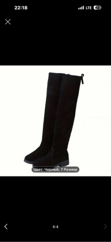 Черные замшевые ботфорты до выше колена. Размер не подошел 39,5 продаю срочно покупала за 1300 - Цвет: черный (указан на фото). - Размер: 39.5 и 7 ( - Материал верха: мягкий велюр/замша на текстильной основе. - Подклад: текстиль. - Подошва: резиновая, с рельефным протектором для лучшего сцепления. - Каблук: низкий устойчивый (прибл. 2–3 см). - Застежка/посадка: тянущийся верх-«чулок»; фиксация по верху голенища шнурком сзади. - Носок: округлый. - Стиль: минималистичный, повседневный/кэжуал; хорошо сочетаются с платьями, юбками и узкими джинсами. - Сезон: осень/весна, прохладное межсезонье. Особенности: - Облегающая посадка по ноге. - Легкие, гибкая подошва. - Универсальный черный цвет визуально вытягивает силуэт.