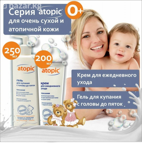 Специальные средства atopic® обеспечат полноценный ежедневный уход за кожей при атопическом дерматите: улучшат самочувствие, помогут продлить ремиссию и предупредить обострение. В состав набора Атопик входит гель для купания от головы до пяток и крем для ежедневного ухода. Гель для купания содержит: -Комплекс мягких, гипоаллергенных ПАВ (моющих компонентов) нежно очищает кожу ребенка, не оказывает раздражающего действия на кожу. -D-Пантенол, бетаин и глицерин фармакопейной степени очистки эффективно увлажняют кожу. -Комплекс экстракта воска ячменного зерна, арганового масла, масла ши предупреждает развитие аллергических реакций, вызванных высвобождением гистамина. -НЕ СОДЕРЖИТ SLS (натрия лаурилсульфат), SLES (натрия лауретсульфат), ОТДУШКИ, КРАСИТЕЛИ . Предназначен для бережного и безопасного очищения атопичной, чувствительной и сухой кожи тела и волосистой части головы ребенка с самого рождения.Сохраняет защитные функции эпидермиса, не сушит нежную чувствительную кожу. Особо мягкая формула позволяет использовать гель так часто, как это необходимо. Формула «без слез» хорошо подходит и для купания, и для умывания. Крем для ухода за кожей: -Гипоаллергенный комплекс современных эмолентов и эмульгаторов натурального происхождения нормализует состояние кожного барьера, увлажняет и защищает эпидермис. -Глицерин фармакопейной степени очистки оказывает увлажняющее действие. -Витамин Е, основной природный антиоксидант, блокирует повреждающее действие свободных радикалов и нормализует обменные процессы, связанные с восстановлением барьерных функций кожи. -Комплекс экстракта воска ячменного зерна, арганового масла, масла ши эффективно избавляет от зуда, раздражения, покраснения кожи. -НЕ СОДЕРЖИТ ОТДУШКИ, КРАСИТЕЛИ! Рекомендован для ежедневного ухода за атопичной, сухой и чувствительной кожей детей. С грудного возраста. Легкая текстура. Интенсивно увлажняет и смягчает кожу.Нормализует состояние эпидермального барьера.