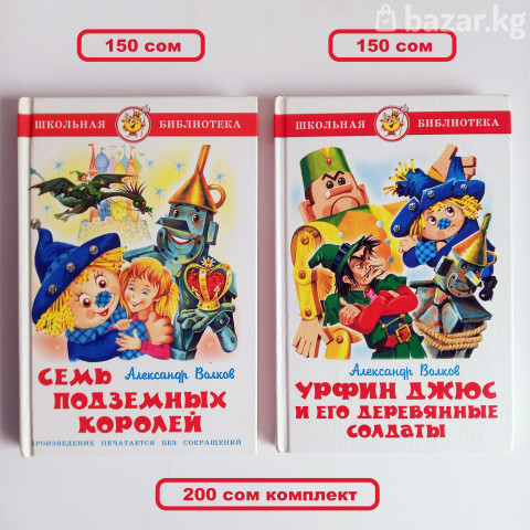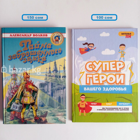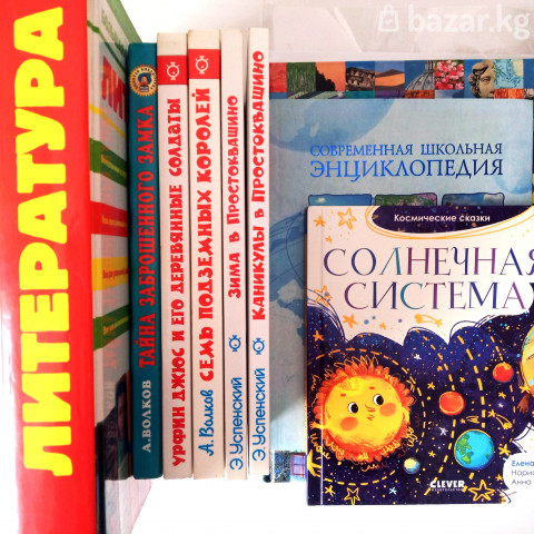 Детская Литература. Состояние: новое. В наличии: Каникулы в Простоквашино - Э. Успенский (Самовар) Зима в Простоквашино - Э. Успенский (Самовар) Урфин Джюс и его деревянные солдаты А. Волков (Самовар) Семь подземных королей А. Волков (Самовар) Тайна заброшенного замка А. Волков (АСТ) Солнечная Система Е. Ульева (Clever) Супер Герои вашего здоровья Н. Ли. Лесные сказки и истории. Сборник. Школьные Энциклопедии по Литературе и Географии. В наличии: Современная школьная Энциклопедия - География (Росмэн) 2010 г. - 380 сом. Большая Энциклопедия школьника - Литература (Эксмо) 2006 г. - 480 сом. Энциклопедия Страны Мира (Росмэн) 2009 г. 300 сом. Практические тетради по Ментальной Арифметике Уровень 1-4. Цена: 600 за комплект. Японская практическая тетрадь по математике (3 класс) на кырг. языке Цена: 200 сом.