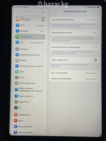 IPad А16 2025 года выпуска, активирован в августе, куплен тоже в августе. В комплекте зарядка и блок. Так же стилус usb-C. АКБ 98% циклов зарядки 89. Состояние отличное. Покупался за 35.500 а стилус за 10.500. Продаю за 40.000 стилус и айпад. Отличный для учебы, так же для игр.