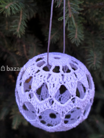 Продается набор ёлочных шаров ручной работы. В наборе 5 шаров. Шары связаны из 💯% х/б нитей. Все шары абсолютно разные и разного же размера (21см, 24см, 27см, 31см и 32см в окружности). Шары упакованы в подарочную коробку. В наличии один набор.