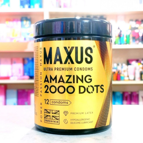 MAXUS Amazing 2000 Dots (Презервативы) Максимум рельефа для невероятных ощущений. Целых 2000 активных точек на поверхности созданы, чтобы довести её удовольствие до пика. Премиальный латекс из Великобритании и гипоаллергенная смазка — для тех, кто не согласен на меньшее, чем «вау-эффект».