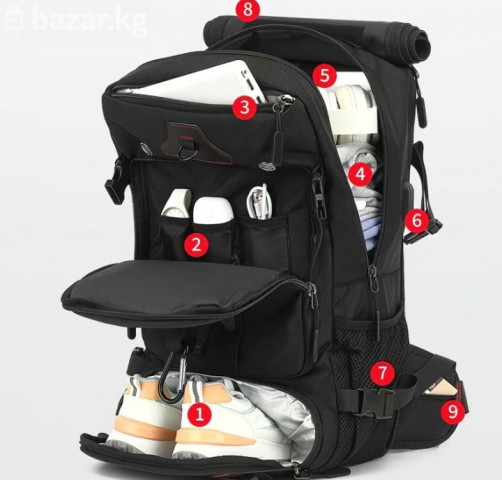 Многофункциональный рюкзак для путешествий, командировок, спорта и активного отдыха. Вместительный, удобный и прочный — всё, что нужно в дороге. Характеристики: - Объём: 50 литров - Материал: ткань Оксфорд — водоотталкивающая, устойчива к износу - 2 в 1: лямки убираются, можно носить как рюкзак или через плечо - Дополнительные ручки — удобно брать с любой стороны Функциональность: - Отсек для обуви — вентилируемый, изолирует грязную/влажную обувь - Главное отделение — с местом для ноутбука и планшета - Передний карман — для канцелярии, блокнотов, ключей - Боковой карман для воды - Карман-антивор на спинке — безопасное хранение документов и ценностей - Удобная форма — легко вмещает личные вещи, одежду и аксессуары - Укреплённые застёжки и молнии — надёжность в любой ситуации