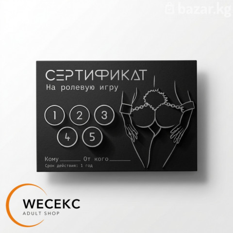 Добавьте искры в ваши отношения! 🔥 Этот сертификат — идеальный способ разнообразить вечер и воплотить в жизнь самые смелые фантазии. Внутри 5 уровней удовольствия: от легкого флирта до полного погружения в роль. Заполните поля «Кому» и «От кого» и приготовьтесь к игре, где правила устанавливаете только вы. ❤️🔥