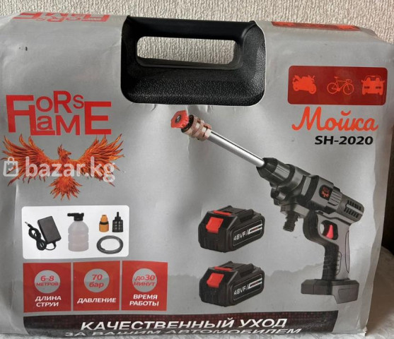 Мойка аккумуляторная Forsage SH-2020 Характеристики: 1.2 аккумулятора в комплекте 2.Давление до 70 бар 3.Длина струи до 8 метров 4.Набор насадок 5.Ёмкость для шампуня/химии 6.Зарядное устройство в комплекте 7.Удобный кейс для хранения и транспортировки Отлично подходит для мойки авто, полива растений, уборки, сельхозработ. Полностью новый товар