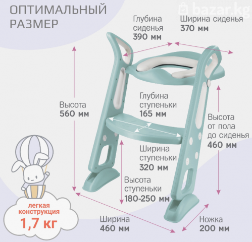 Детская накладка - сиденье на унитаз, цвет бирюзовый Сиденье со ступенькой поможет приучить ребёнка использовать туалет для взрослых. Лёгкую пластиковую конструкцию карапуз без труда самостоятельно придвинет к унитазу. Благодаря подножке кроха заберётся наверх и примет удобное положение. Для комфорта малыша предусмотрены ручки с 2 сторон. Особенности Анатомическое сиденье со спинкой. Защищающий от брызг выступ. Подножка с рельефной поверхностью. Удобно складывается Габариты и вес Размер (Д × Ш × В, см): 59 х 47 х 50 Вес брутто: 2.0 кг #ДетскаяНакладкаНаУнитаз #СиденьеДляДетей #ДетскоеСиденье #ТуалетДляДетей #ОбучениеГоршку #ПриучениеКГоршку #ДетскаяГигиена #УдобствоДляРебенка #АксессуарыДляДетей #ТоварыДляМалышей #ПолезныеТоварыДляДома #КомфортДляРебенка #ДетскаяБезопасность #СиденьеНаУнитаз #ДетскиеТовары #ТуалетноеСиденье #ДетскиеАксессуары #ГигиенаРебенка #ТоварыДляДома #ДетскийКомфорт#ДетскаяНакладкаНаУнитаз #СиденьеДляДетей #ПриучениеКГоршку #ДетскаяГигиена #КомфортДляРебенка #ДетскиеТовары #АксессуарыДляДетей #СиденьеНаУнитаз #ТуалетДляДетей #ПолезныеТоварыДляДома