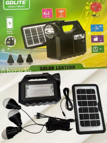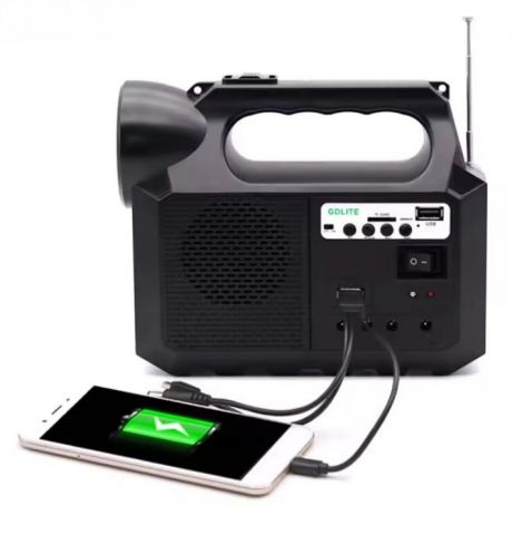 Портативная станция для зарядки GDLITE GD-8017 Music Solar System MP3/TF/USB /Bluetooth – это универсальная солнстанция GDLite GD-8017 предназначена для использования в кемпингах, охотничьих и рыболовных походах, лагерях, походах, палатках, автоприцепах, дачах и т.д. при более длительном пребывании, где в вечернее время возникает необходимость освещения нескольких объектов, музыки, а также в зарядке мобильных устройств типа GSM, GPS, PS и т.д. Состоит из солнечной батареи, фонаря/плеера (многофункционального устройства), 3-х светодиодных ламп и кабеля для зарядки портативных устройств. Лампы оснащены энергосберегающими выключателями. Фонарь/плеер можно заряжать от солнца с помощью солнечной панели или через USB-порт. Имеет встроенный аккумулятор, три выхода (ВЫХОД) для включения светодиодных ламп освещения, один USB-порт для зарядки портативных устройств, вход для солнечной батареи, слот для карты памяти для плеера, USB-порт. слот для флешки. Характеристики: Тип: портативная солнечная батарея / солнечная батарея для зарядки телефона Количество светодиодов – 3шт Встроенный аккумулятор Питание – cеть 220В и солнечная батарея Время зарядки – 10-15 часов Тип аккумулятора – герметичный свинцовый кислотный Материал корпуса – пластик Цвет модели – черный Комплектация: Внешний аккумулятор 6В, 5Ач GD – 8017M Солнечная панель 9В, 3Вт LED лампы – 3шт. Упаковка #Фонарик #Освещение #Свет #ЯркийСвет #ПортативныйФонарик #КарманныйФонарик #ФонарикНаАккумуляторе #ФонарикСветодиодный #ФонарикДляДома #ФонарикДляОхоты #ФонарикДляРыбалки #ФонарикДляПохода #ФонарикДляКемпинга #ФонарикДляАвто #ФонарикДляРаботы #ФонарикНаАккумуляторах #ФонарикСПодзарядкой #НалобныйФонарик #РучнойФонарик #СветодиодноеОсвещение #ПереноснойСвет #ПоходныйФонарик #ТуристическийФонарик #МощныйФонарик #КомпактныйФонарик #ФонарикСПовышеннойЯркостью #УличноеОсвещение #ДомашнееОсвещение #РабочееОсвещение #ФонарикСПерезарядкой #ФонарикСПоводком #ФонарикСПитаниемОтUSB #ФонарикНаМагните #ФонарикСРегулировкойЯркости #ФонарикСПовербанком #ФонарикСПанелью #СветВДороге #ОсвещениеВДоме #СветДляПохода #ФонарикДляНочи #ФонарикНаСветодиодах #ЭнергосберегающееОсвещение #СовременноеОсвещение #УдобныйФонарик #ФонарикДляБезопасности #ФонарикСПереноской #ФонарикСПоворотнойГоловкой #ФонарикДляПутешествий #ФонарикДляАктивногоОтдыха #ЯркийФонарик #ФонарикСПультом #ФонарикСПереключателемРежимов #ФонарикСПовышеннойДальностью