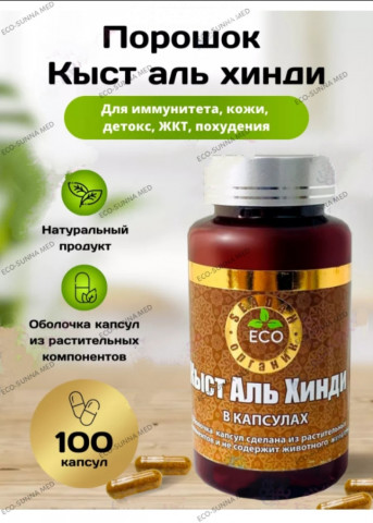 💊 Капсулы КЫСТ АЛЬ ХИНДИ от местного производителя SEADAN ✔ Кыст аль хинди представляет собой перемолотый корень дерева и имеет очень сложный химический состав, насчитывающий около 140 ингредиентов, многие из которых еще как следует не изучены. В него входят: жиры, протеины, карбогидраты, минералы — фосфор, кальций, железо, тиамин, витамины С и Е, каротин, аланин, глютамин и др. Так же костус содержит в себе хилинин и бензоатную кислоту, и данные элементы борются с бактериями в организме. Костус снимает боль, избавляет организм от токсинов, стимулирует пищеварение, улучшает детородные функции женщин, является спазмолитиком и желчегонным средством.  Что касается лечения бесплодия, то кыст аль индии эффективно устраняет основные причины, повлекшие за собой развитие недуга. К ним относят воспалительные процессы в органах мочеполовой системы, поликистоз яичников, эрозию шейка матки, миому, неспособность к вынашиванию плода, проблемы с овуляцией и эякуляцией, гормональный дисбаланс. 🎋 Кыст аль Хинди обладает уникальными лечебными свойствами в лечении бесплодия. Растения на протяжении многих веков используют в Тибетской, Индийской и Арабской медицине, исцеляя с его помощью от таких заболеваний как: - насморк и гайморит; - патологии печени и желудка; - простудные заболевания и лихорадка; - плеврит; - отравление; - глисты; - бесплодие; - проказа и лихорадка; - холера и желтуха; - мужское бесплодие и сахарный диабет; - проблемы с щитовидкой и женской половой системой; - подагра и радикулит; - недостаток тестостерона и снижение мужской силы; - язва и кожные заболевания; - кишечные паразиты и от рассеянный склероз. Важно отметить, что кыст можно использовать и беременным, тогда как многие лекарственные средства во время беременности применяются с осторожностью. И это не считая улучшения пищеварения и снижение температуры. Корни костуса использовались в индийской и китайской медицине для улучшения пищеварения, для лечения респираторных и инфекционных заболеваний. Панамские племена тоже имели сведения о полезных свойствах костуса. Они применяли его для очистки организма от различных паразитов. С давних времен костус используется в косметических средствах. Костус входил в составы различных кремов, масок, скрабов, порошков для мытья. Из-за неудобства в пользовании и сильной горечи в употреблении порошка, нами порошок кыст аль хинди помещены в капсулы и расфасованы в баночки по 100 штук вместе с инструкцией. Важно отметить, что прием в виде капсул не вызывает у людей отвращения что играет важную роль в постоянстве и удобстве при приеме данного препрата. СПОСОБ ПРИМЕНЕНИЯ: - взрослым по 2 капсулы 3-5 раза в день; - детям по 1 капсуле 2 раза в день за полчаса до еды или после еды через час. 🌐 О НАС и НАШЕЙ ПРОДУКЦИИ 👇 Более подробную информацию о каждом продукте вы всегда можете найти в открытых источниках (интернет, соцсети) или получить напрямую у нас — мы с радостью подскажем. 🌿 Если вас интересует что-то ещё — заходите в наш канал, профиль или страницу. В наличии широкий ассортимент продукции от известных натуральных брендов, таких как:🔸SEADAN🔸HEMANI🔸NUTRAXIN🔸SHIFFA HOME🔸ALI HERB🔸Био АЛА-ТОО🔸BALEN🔸другие. ✅ Почему выбирают нас: ✔ Продукция — только оригинал, без ГМО и лишних примесей ✔ Работаем в розницу и оптом ✔ Бесплатная консультация — мы действительно 